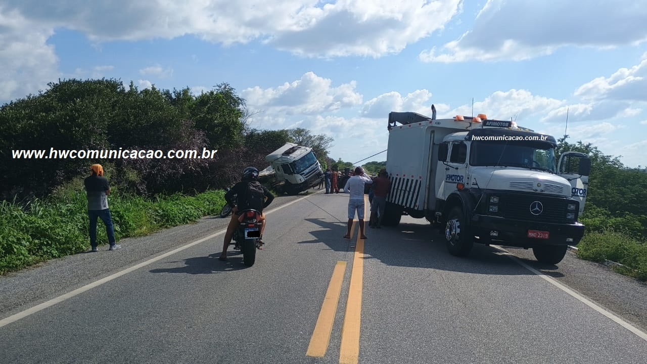 BR 427 teve trânsito paralisado para retirada de Carreta que caiu dentro de açude próximo a Pombal 24 de março de 2024